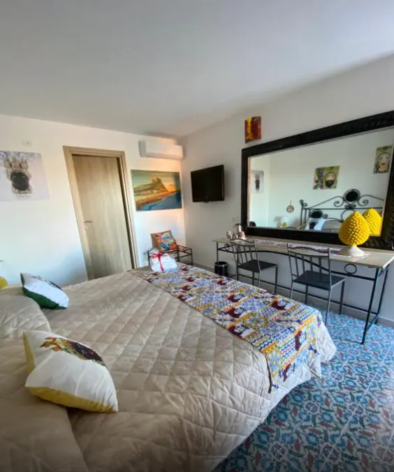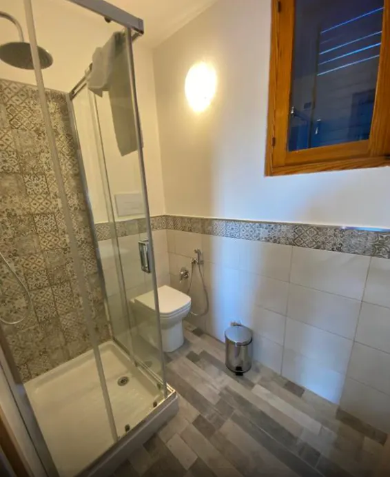 The double room features a private entrance, a terrace with sea views, and a private bathroom with a shower. The unit has one bed.